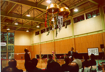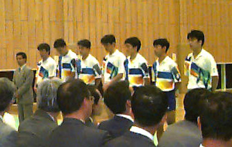 始めに体育施設を作って頂いた上にこのような機会まで作って頂いた関 係各位に感謝します。アトランタオリンピック代表の町田選手を始め海 外遠征にいくようなものすごいメンバーが嵐の中に来てくれました。